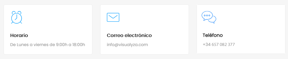 Si tiene cualquier duda acerca de la forma en que tratamos y usamos sus datos personales o desea ejercer cualquiera de los derechos previstos, puede comunicárnoslo enviando un correo electrónico a delegado.protecciondatos@visualyza.com, o bien escribiéndonos a la siguiente dirección C/ Camarena 244, 28047 de Madrid..